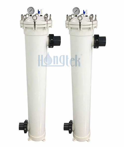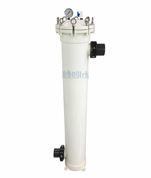 La apariencia de la carcasa del filtro FRP de alto flujo es suave y limpia en la superficie interna para evitar el crecimiento de bacterias, fácil de limpiar y rentable. La carcasa del filtro de alto flujo FRP se usa ampliamente en sistemas industriales de prefiltración RO, pretratamiento UF, alimentos y bebidas, tratamiento de agua de plantas de energía, tratamiento de agua con productos químicos finos, sistemas de desalinización de agua de mar, etc.