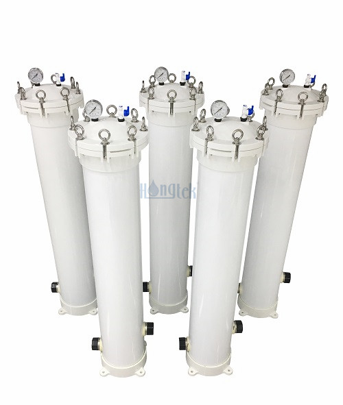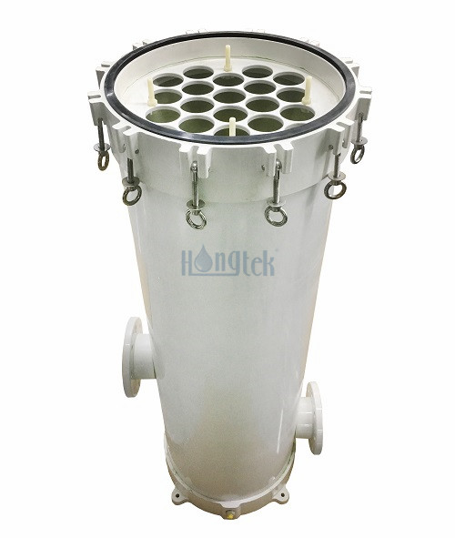 La carcasa del filtro multicartucho FRP de la serie CRP de Hongtek está diseñada para filtración de procesos que requiere un gran caudal con capacidad de 5 piezas a 22 piezas de cartuchos de filtro de agua de 2,5" de diámetro exterior. La carcasa del cartucho múltiple FRP está hecha de FRP (plástico reforzado con fibra), los cartuchos de filtro se cambian de forma rápida, fácil y segura. La carcasa del cartucho múltiple FRP acepta diferentes tipos de filtro de cartucho y estilos de tapas finales en DOE y SOE, es fácil de instalar y tiene un bajo costo de mantenimiento. La carcasa del filtro múltiple FRP tiene una larga vida útil y es grande. Caudal, buena capacidad de suciedad y alta eficiencia de filtración. La carcasa del filtro de cartuchos múltiples de FRP es adecuada para una amplia gama de proyectos de procesamiento de agua, como prefiltración por RO, tratamiento de agua, alimentos y bebidas, plantas de energía, desalinización de agua de mar, etc.