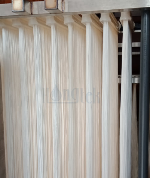 ● El modo de flujo de agua MBR de fibra hueca PVDF es de afuera hacia adentro, succión de presión negativa, aireación continua