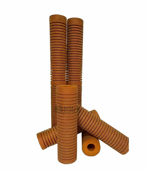 Los cartuchos de filtro aglomerados con resina ranurados serie GRB están hechos principalmente de fibras y resinas acrílicas, con la adición de adhesivos, agentes de curado y estabilizadores mediante sinterización a alta temperatura. Los filtros adheridos con resina tienen una estructura dura que se aprieta gradualmente y permite que los cartuchos resistan viscosidad y temperatura extremas sin deformarse ni colapsar. La calidad de los cartuchos unidos con resina Hongtek es equivalente a los cartuchos de filtro Micro-Klean de 3M, están sueltos por fuera y apretados por dentro, con microporos uniformes y alta porosidad, lo que permite que las partículas más grandes sean interceptadas en la superficie de los filtros, mientras que las partículas más pequeñas son interceptadas en la capa interna, pertenecientes a la filtración profunda, aumentando así la capacidad de interceptación y la vida útil. Adopta un proceso de procesamiento para agregar ranuras en la superficie de los cartuchos filtrantes unidos con resina, expandiendo así el área de filtración efectiva y logrando una eficiencia de filtración ultra alta del 99,9%. Los cartuchos unidos con resina se utilizan ampliamente en muchas industrias químicas.