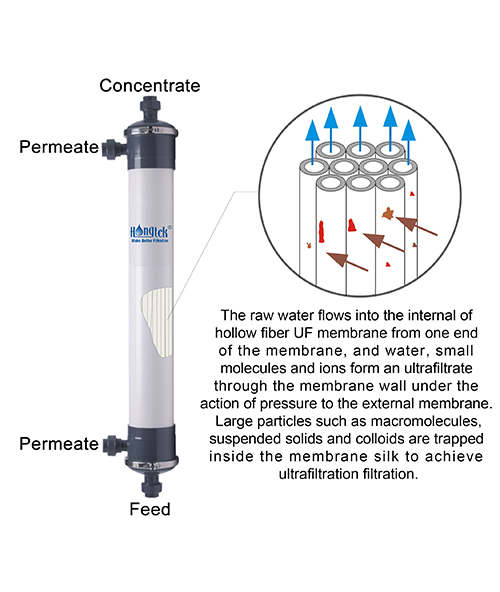 El módulo de membrana de PVC UF de 6 "de la serie Hongtek UFP160 está hecho de una membrana de ultrafiltración de fibra hueca de PVC modificada de alta calidad. La membrana de ultrafiltración de PVC tiene una estructura cortical doble interna y externa, y el efluente se filtra mediante una doble capa. La membrana de PVC de fibra hueca aún puede garantizar un excelente efecto de filtración en condiciones operativas de fluctuación frecuente del agua cruda y mala calidad del agua. La tapa final y la estructura de abrazadera hacen que la capacidad de presión del módulo de membrana de PVC UF de la serie UFC160 supere 1 MPa. La membrana de ultrafiltración de PVC tiene buena Antienvejecimiento, resistencia a ácidos y álcalis y estabilidad química. El módulo de membrana de PVC Industrail de 6" ocupa poco espacio, tiene un diseño compacto y un diseño modular para sistemas de tratamiento de agua de tamaño mediano.