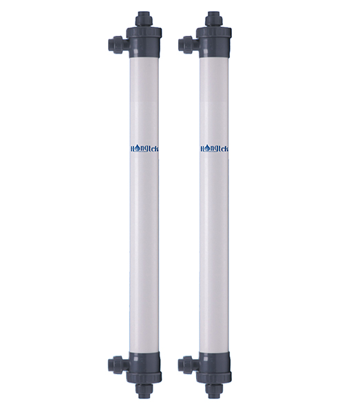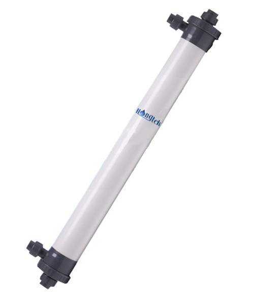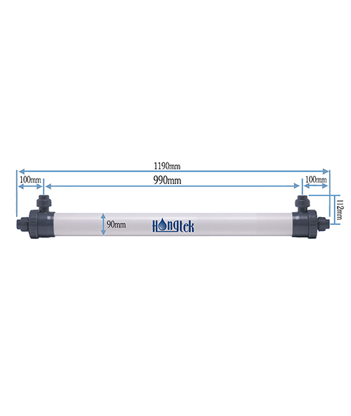 El módulo de membrana de ultrafiltración de PVC de fibra hueca de la serie Hongtek UFP90 está hecho de una membrana de ultrafiltración de fibra hueca de PVC (cloruro de polivinilo) modificada, que tiene las características de gran flujo, alta resistencia, resistencia a ácidos y álcalis y lavado con resistencia a medicamentos. La carcasa del módulo de membrana está hecha de material UPVC y está sujeta a una presión superior a 1 MPa.