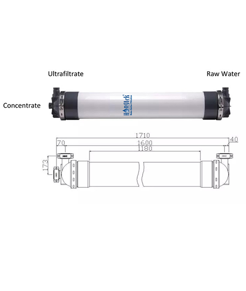 El módulo de membrana de ultrafiltración de fibra hueca de PVDF de 10 "de la serie Hongtek UFM250 es una tecnología avanzada internacional para la separación de líquidos y la purificación de agua. La membrana UF de fibra hueca está hecha de PVDF modificado con microporos distribuidos uniformemente en la pared de la membrana, el líquido de alimentación fluye dentro o fuera de la membrana bajo la influencia de la presión. Los solventes o moléculas pequeñas pueden penetrar a través de la membrana para convertirse en un líquido puro, mientras que las macromoléculas, partículas coloidales y bacterias son retenidas y expulsadas por el El fluido en circulación se convierte en una solución concentrada. El módulo de membrana PVDF UF es un material de filtro ideal para el tratamiento de agua.